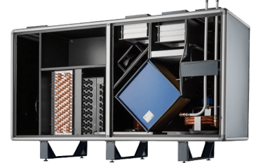 L'échangeur à flux croisés permet de déshumidifier pendant une grande partie de l'année en utilisant uniquement l'air extérieur, ce qui procure un avantage énergétique significatif.