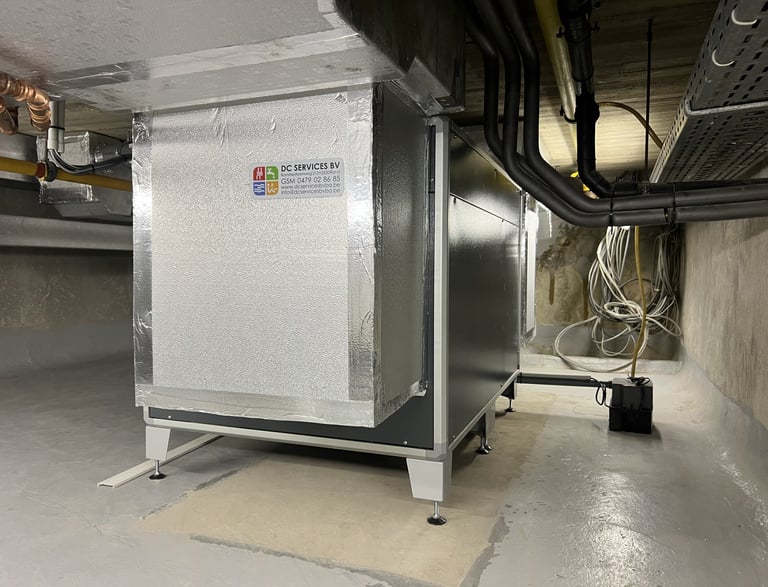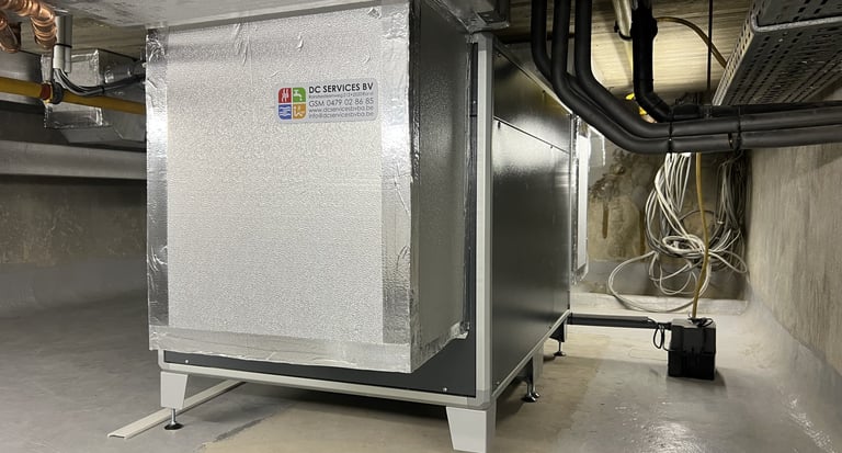 Installatiebedrijf DC Services heeft hier gekozen voor een AMK in een verticale opstelling met een geïntegreerde B8R warmwaterbatterij en een buisventilator voor extra verse lucht.