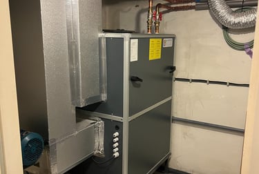 Installation company DC Services opted for an AMK in a vertical configuration with an integrated B8R hot water coil and a tube fan for additional fresh air.