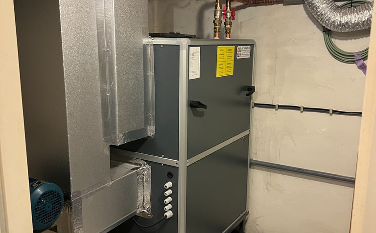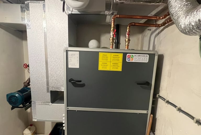 Installatiebedrijf DC Services heeft hier gekozen voor een AMK in een verticale opstelling met een geïntegreerde B8R warmwaterbatterij en een buisventilator voor extra verse lucht.